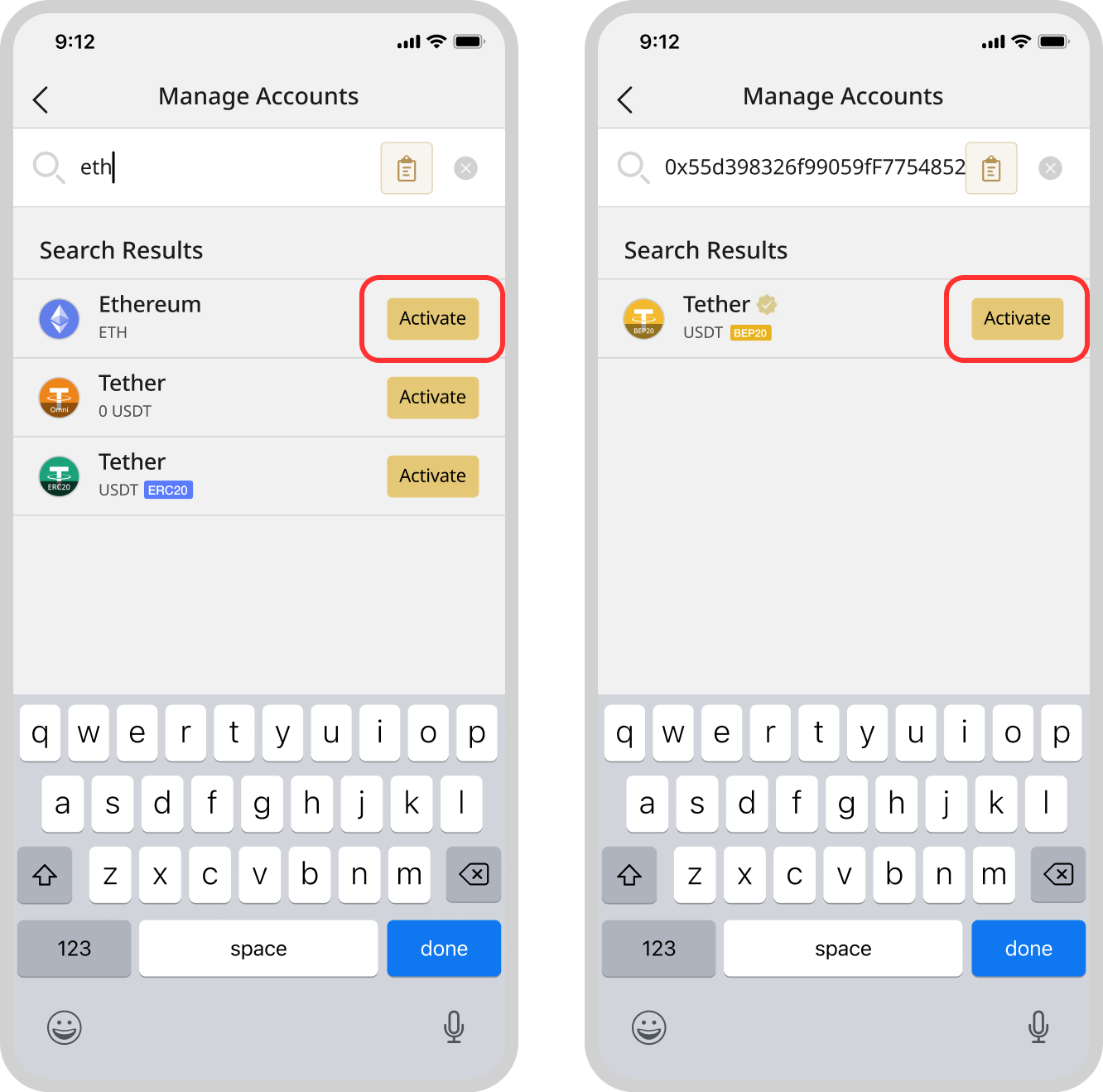 - 검색 결과에서 토큰을 찾아 "활성화"를 탭합니다.